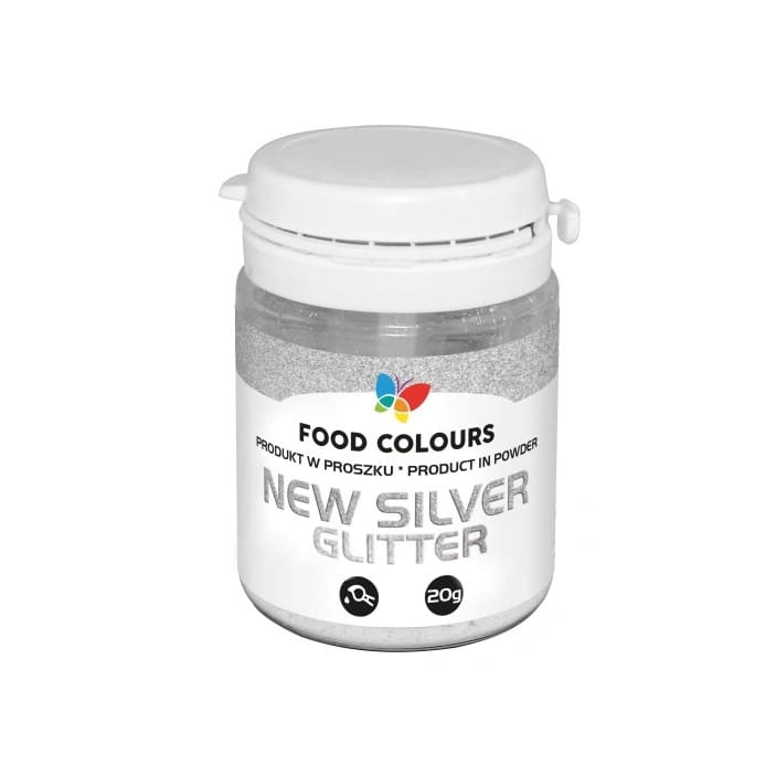 Barwnik spożywczy do dekoracji w proszku w kolorze złotym NEW SILVER GLITTER firmy Food Colours.