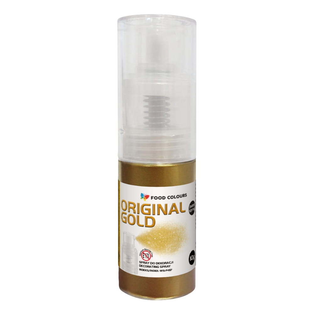 Jadalny brokat złoty w opakowaniu z pompką to uniwersalne rozwiązanie do dekoracji słodkosci. Intensywny kolor, idealny do dekorowania powierzchni. W wygodnej buteleczce z pompką (suchy spray). Idealny do dekoracji powierzchni masy cukrowej, kremu, galaretek. Nadaje się do pracy z aerografem, jak i do ręcznego malowania.