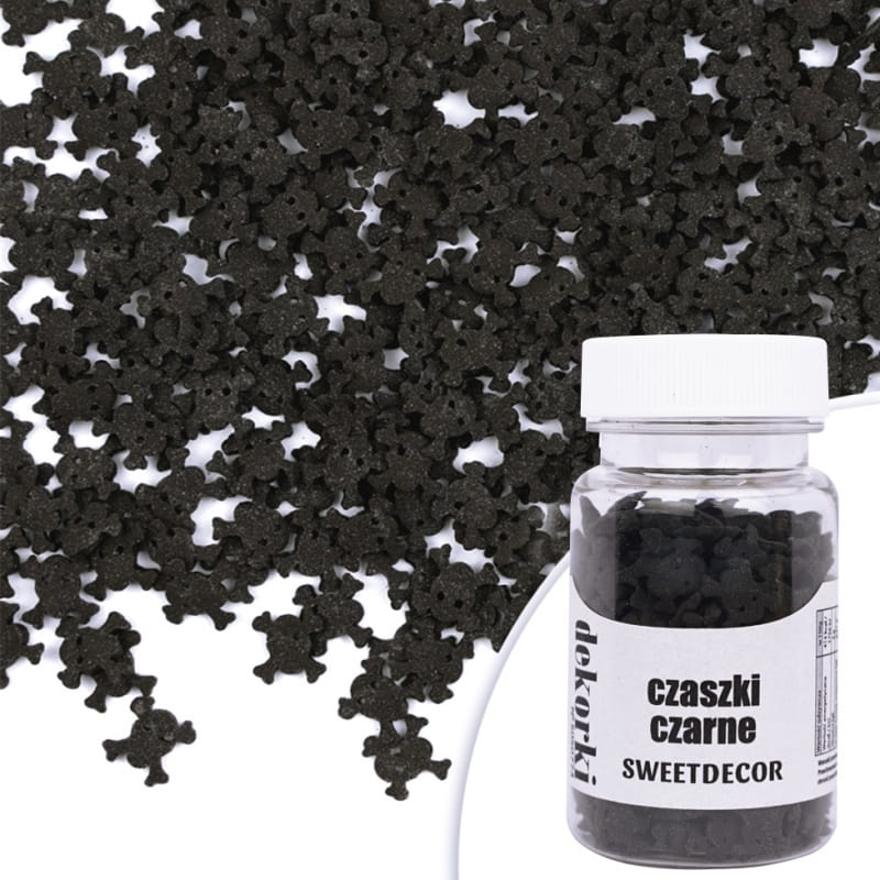 Posypka czarne cukrowe czaszki to idealna dekoracja słodkości na Halloween.