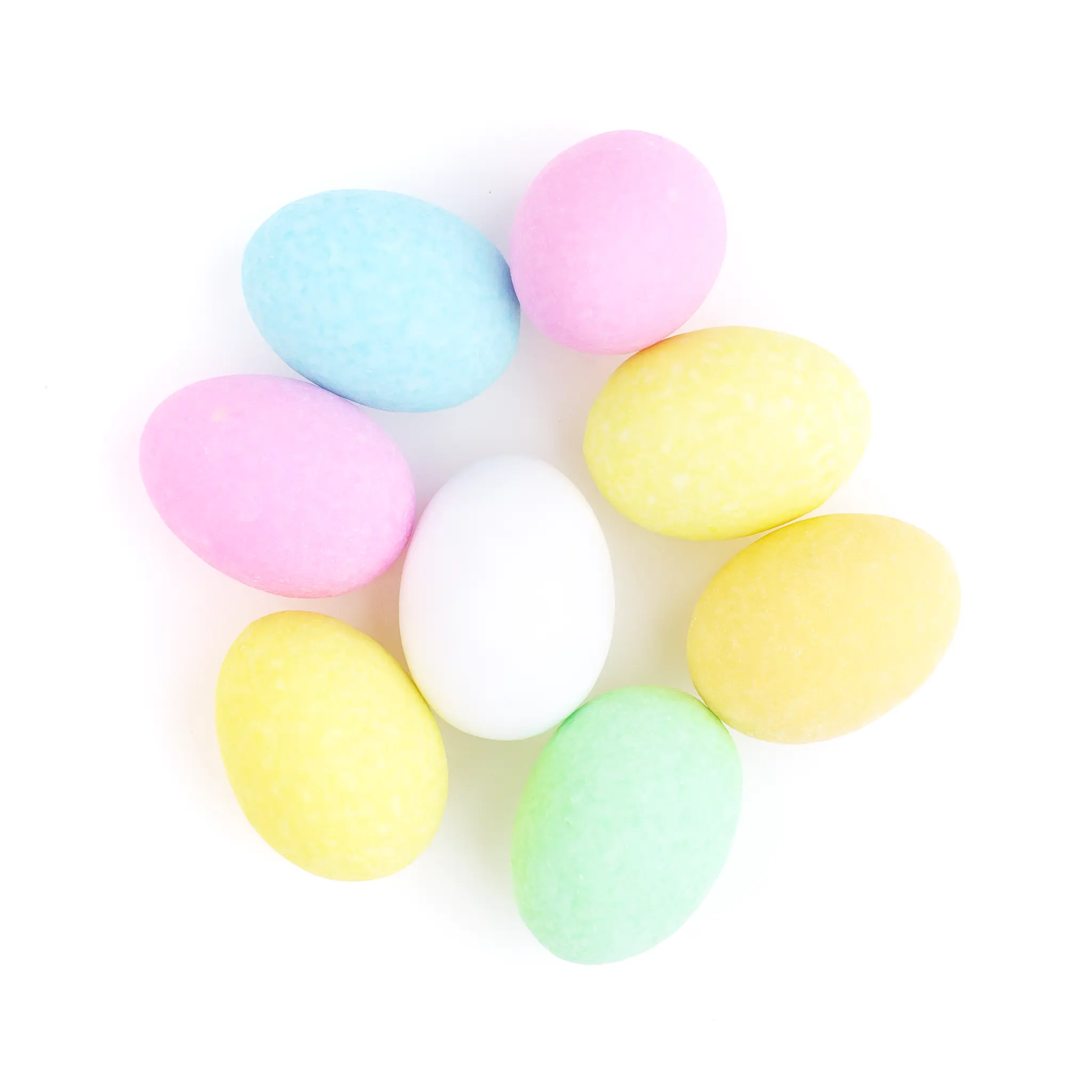 W zestawie znajduje się ok. 10 jajek w różnych łagodnych pastelowych kolorach.