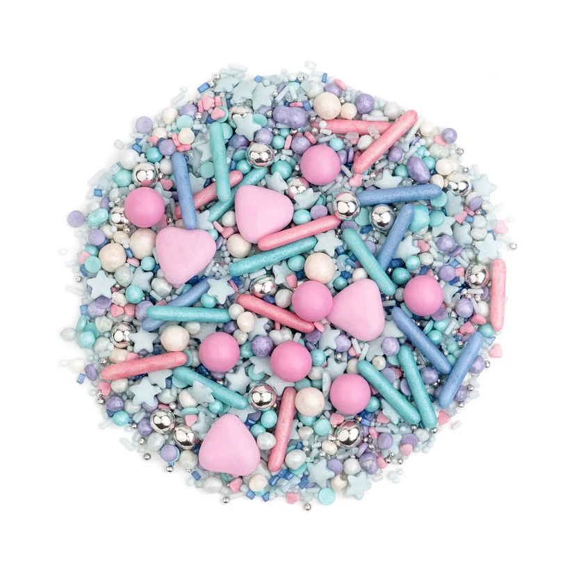 Posypka cukrowa Magic Mermaid to posypka w kolorach pastelowych z dodatkiem srebrnych elementów która idealnie nada się do dekoracji tortów, ciast, ciasteczek, muffinek.