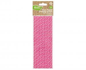 Słomki papierowe różowe w groszki 12szt.