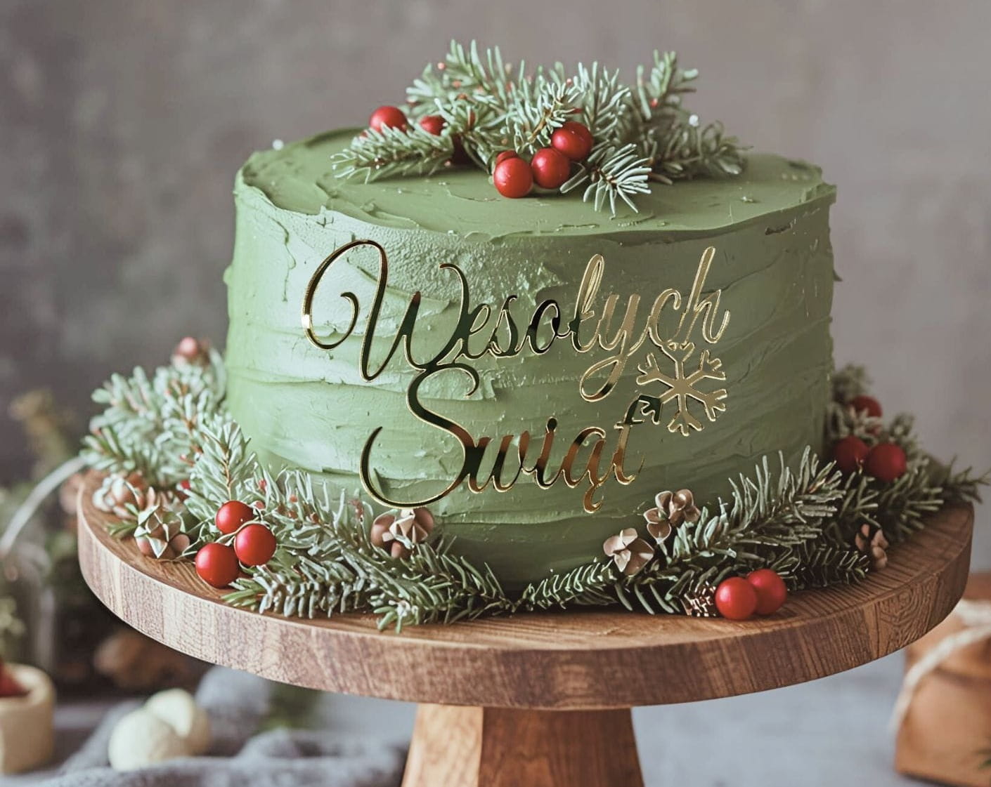 Topper/dekor na tort z napisem Wesołych Świąt z śnieżynką.