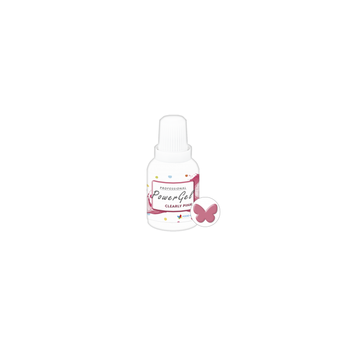 RÓŻOWY CLEARLY PINK: syrop glukozowy, gliceryna E422, woda, barwniki: azorubina E122, czerń PN E151, aromat, substancja konserwująca: sorbinian potasu E202, emulgator: hypromeloza E464, regulator kwasowości: kwas cytrynowy E330.
